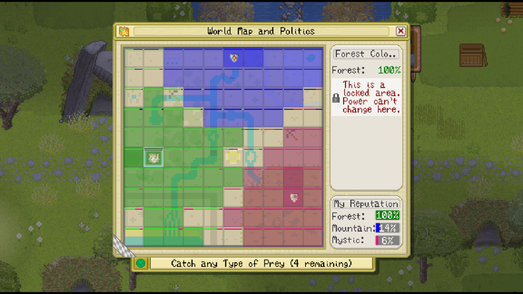 Screenshot of the world map I took while playing Cattails.